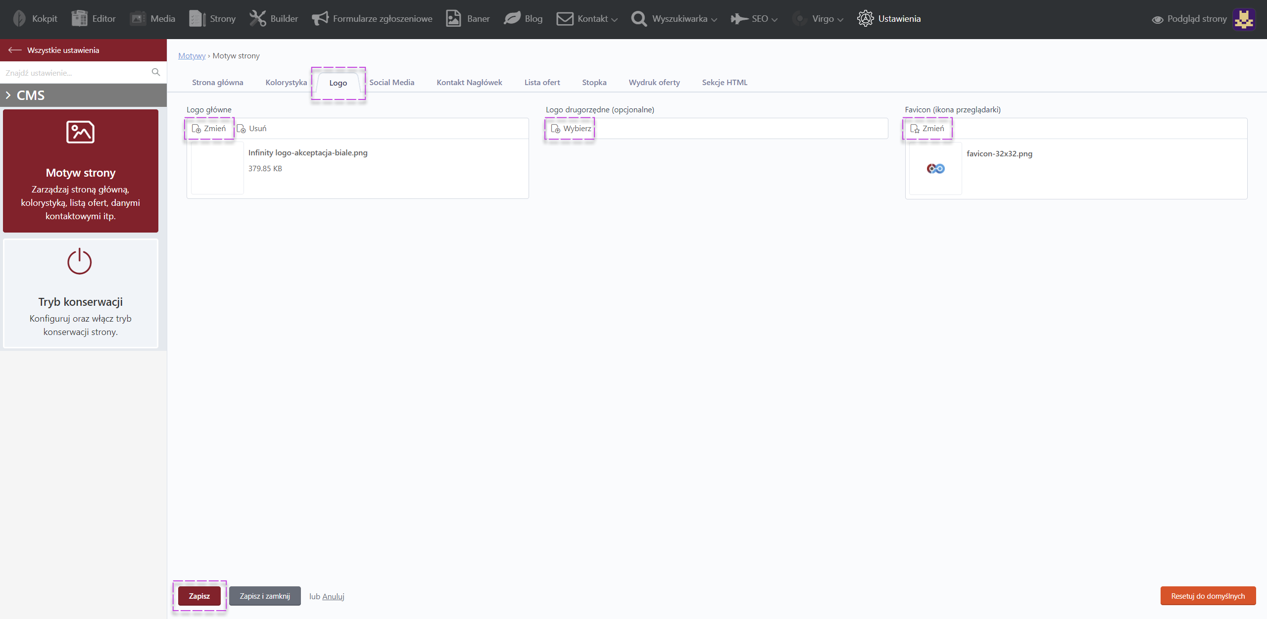 Możesz dodać Logo drugorzędne, które będzie wyświetlane na urządzeniach mobilnych oraz na urządzeniach stacjonarnych po rozpoczęciu przewijania (scrollingu) strony